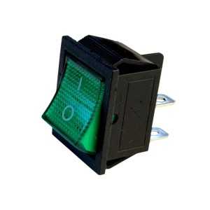 Interruttore bipolare luminoso verde con 4 conatti per faston 4,7x0,8 mm