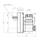 Dimensioni: Altezza totale 105 mm, larghezza 72 mm, profondità 96 mm.